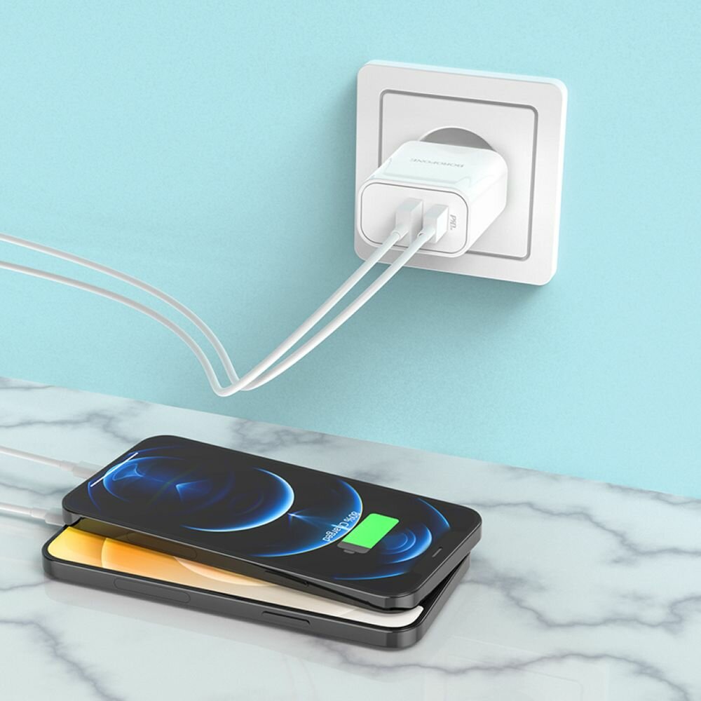 Сетевое зарядное устройство BOROFONE BA55A Crown speed, PD20W + QC3.0, белый