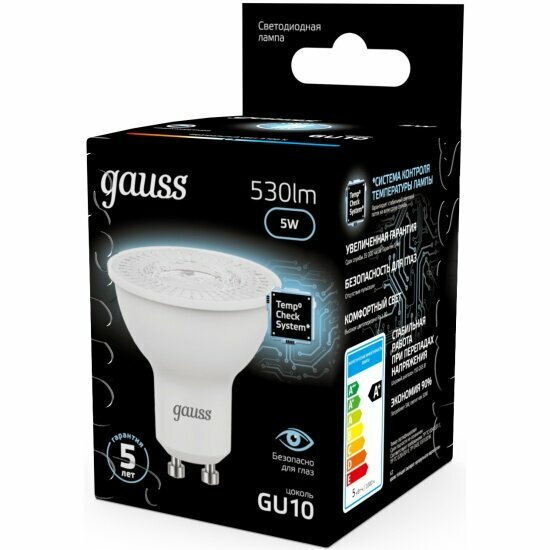Лампочки Светодиодная лампа Gauss LED GU10 5W SMD AC220-240V 4100K FROST 1/10/100