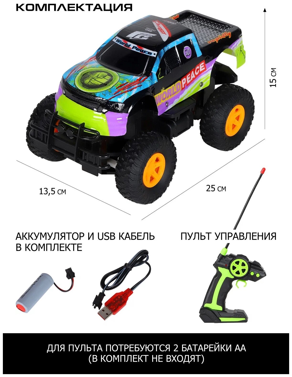 Радиоуправляемая машина Монстр-Трак на пульте управления ударопрочный свет корпуса аккумуляторная детская машинка масштаб 1:16 USB зарядка