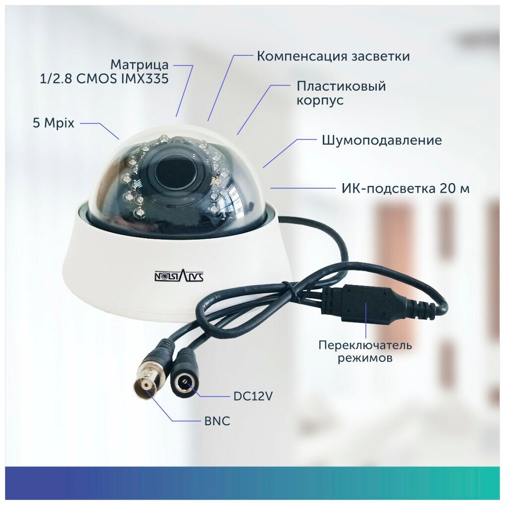 Лучшие цены. Камера видеонаблюдения уличная купольная мультиформатная 5 Mpix AHD TVI CVI CVBS камера OSD UTC 2.7 - 13.5 mm В комплекте инструкция на русском языке! Вы всегда можете получить техническую консультацию специалистов по настройке оборудования оставив свой запрос на нашем сайте: https://shop. satvision-cctv. ru/base/support/ Купольная мультиформатная видеокамера: - разрешение 5 Mpix; - объектив 2.7-13.5 мм; - поддержка форматов AHD (5 и 4 Mpix)/TVI (5 и 4 Mpix)/CVI (4 Mpix). Магазины в вашем городе.
