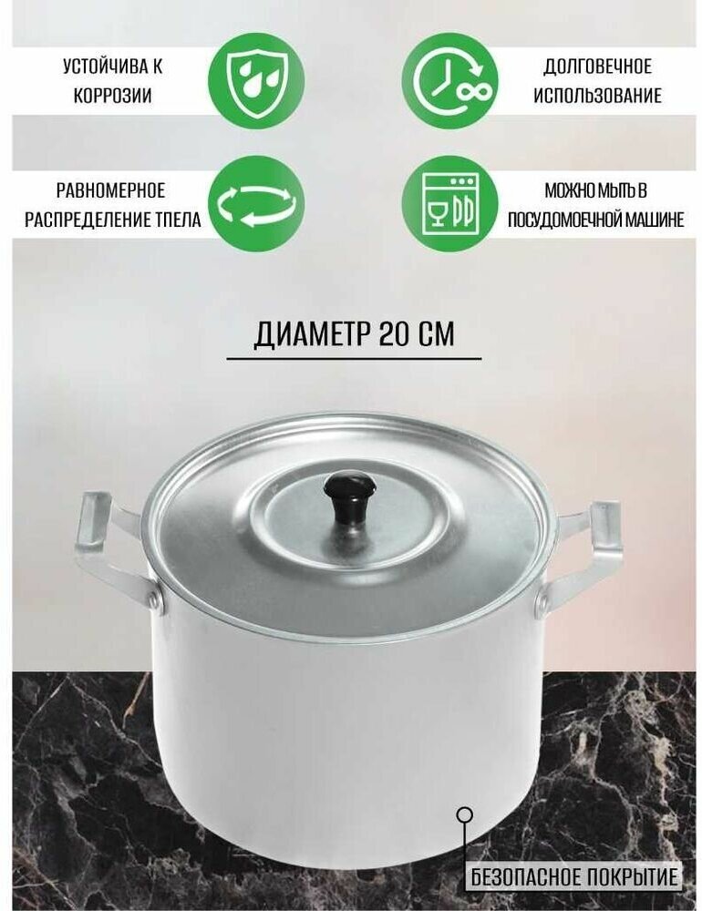 Лучшие цены. Алюминиевая кастрюля применяется для приготовления различных блюд, изготовлена из пищевого алюминия, проста в уходе, быстро и равномерно нагревается. Ее преимуществами являются легкость в уходе, высокая устойчивости к царапинам, а так же возможность использования металлических аксессуаров. Поставляется вместе с крышкой соответствующего диаметра. Производится на заводе Демидовский в г. Каменск-Уральский. Можно мыть в посудомоечной машине. Магазины в вашем городе.