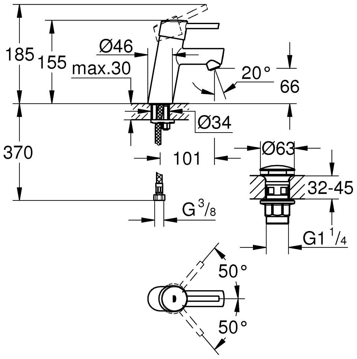 | Подвод воды | шланги / 370 мм / G 3/8" |