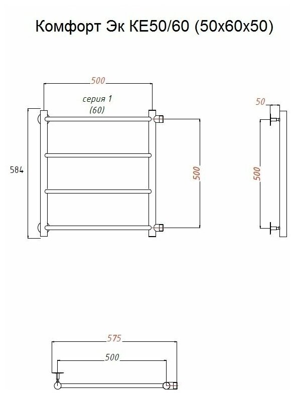 Лучшие цены. Водяной полотенцесушитель TERMOsmart Комфорт Эк 50х60 KE50/60. Характеристики: - Цвет: хром. - Материал: нержавеющая сталь AISI 304. - Размер (ШхВхГ): 575х584х82 мм. - Межосевое расстояние: 50 см. - Количество перекладин: 4. - Группировка перекладин: равноотдаленные. - Форма: лесенка. - Форма профиля: круглая. - Направление подключение: слева, справа, боковое. - Монтаж: подвесной. - Монтажное подключение: 3/4. - Резьба подключения: наружная. - Теплоноситель: вода. - Площадь обогрева: 2.01 кв. м. Магазины в вашем городе.
