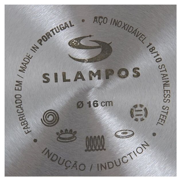 Кастрюля из нержавеющей стали с толстым дном, 1.6 л, 16 см, стальной, серия Royal, Silampos, 633123VY1016