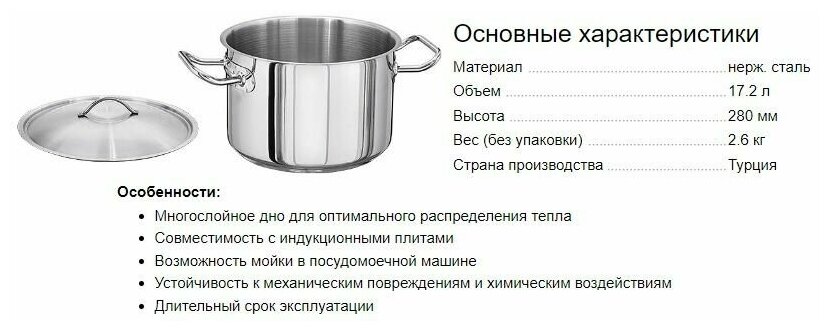 Лучшие цены. Кастрюля EKSI 30142828 из нержавеющей стали. Используется на предприятиях общественного питания для приготовления широкого спектра блюд методом варки. Кастрюля является базовой кухонной посудой, без которой не может обойтись ни одно предприятие общественного питания. Нержавеющая сталь, из которой выполнена представленная модель, хорошо справляется с приготовлением практически всех блюд, не выделяет токсины, отличается прочностью и красотой, а также долго служит. Магазины в вашем городе.