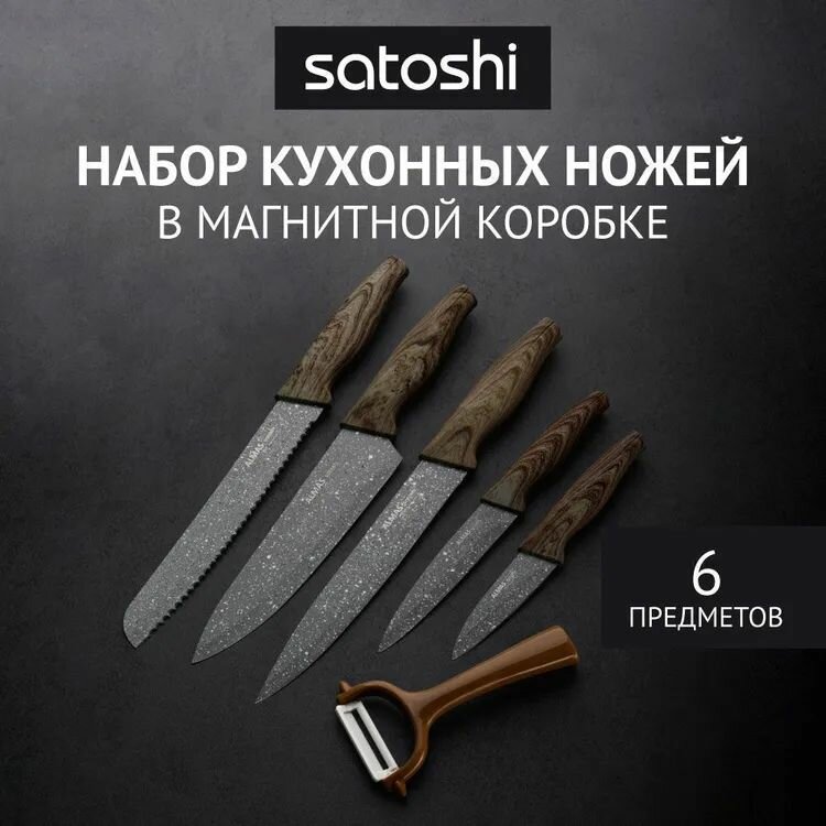 SATOSHI Алмаз Набор ножей кухонных 6пр, в магнитной коробке