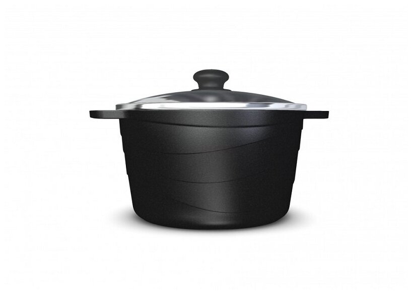 Кастрюля Кастрюля со стекл. крышкой 6л "Каменная" Черный гранит
