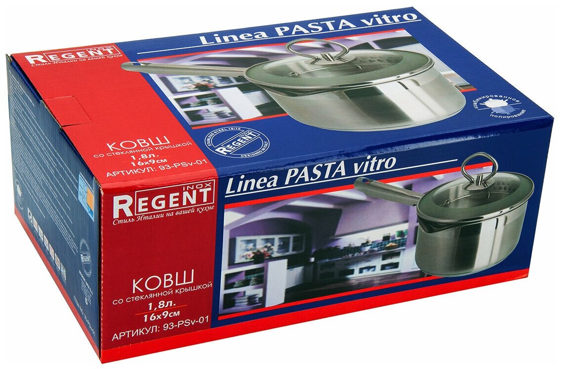Лучшие цены. Артикул № 933577 Если в выборе посуды вы цените удобство, многофункциональность и надежность, то ковш PASTA vitro от Regent Inox придется вам по душе. Его компактный размер 16х9 см позволяет сэкономить место на кухне. В объеме 1,8 л можно приготовить вкусные соусы и подливы, а также кашу для ребенка. Дополнительное удобство в эксплуатации обеспечивают носик и отверстия для слива, при помощи которых жидкость сливается аккуратно, без разбрызгивания. Магазины в вашем городе.