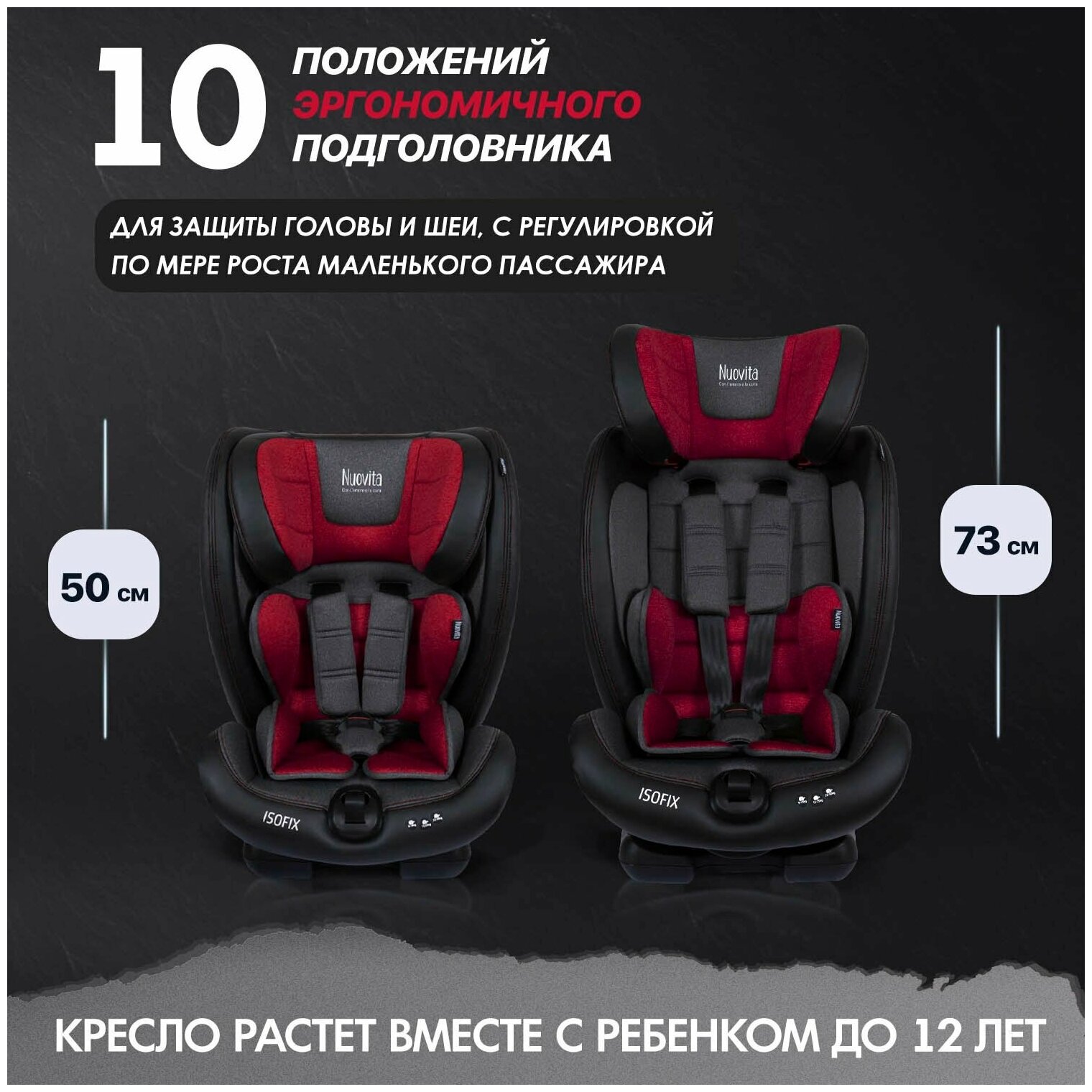 Автокресло детское с креплением Isofix Nuovita Maczione N123i-1/Группа: 1/2/3 – от 9 месяцев до 12 лет, вес 9-36 кг (Vinoso/Бордовый)