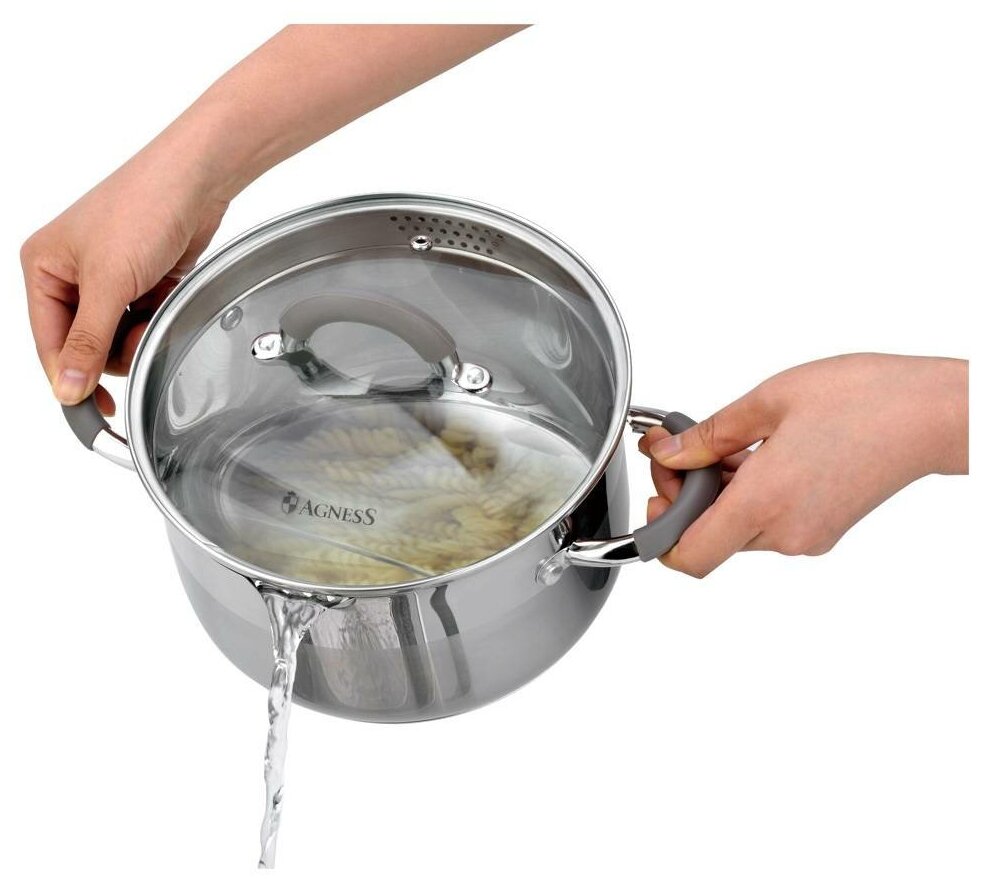 Лучшие цены. Кастрюля profi home со стеклянной крышкой, 5,0л 24x13.5 см Agness (914-218) Бренд AGNESS представляет стильные кастрюли серии PROFI HOME. Кастрюли выполнены из нержавеющей стали с высокими антикоррозионными свойствами. Преимущества серии PROFI HOME это: • Практичный дизайн с широким носиком для слива, что очень удобно во время готовки • Энергосберегающее капсульное дно. Такое дно имеет свойства накапливать (аккумулировать). Магазины в вашем городе.