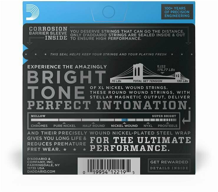 Струны D'Addario EJ22 струны для электрогитары Jazz Medium, 13-56