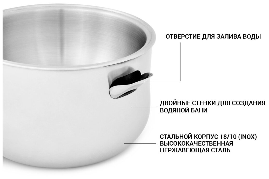 Лучшие цены. Компания FISSMAN для создания своей посуды использует только передовые технологии, ставя перед собой цель - соответствовать желаниям и потребностям покупателей и добиваться стабильно высокого качества предлагаемых товаров. Очень часто в рецептах встречается указание, что ингредиенты должны быть приготовлены на водяной бане. Таким способом удобно кипятить молоко и варить кашу, разогревать детское питание, растапливать шоколад и мед, готовить различные соусы, кремы и заварное тесто и даже заваривать настои из. Магазины в вашем городе.