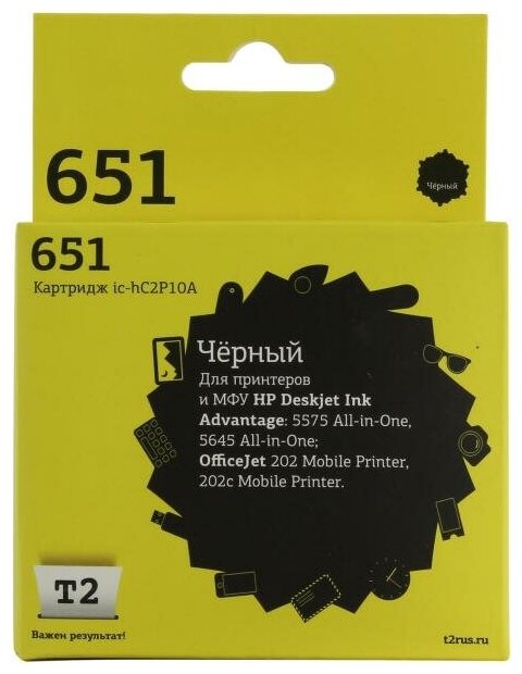 IC-HC2P10A Картридж T2 №651 для HP Deskjet Ink Advantage 5575/5645/OfficeJet 202/202c MobilePrinter, черный