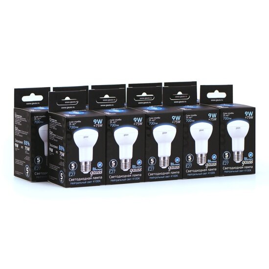 Лампочки Светодиодная лампа Gauss LED R63 E27 9W 700lm 4100K (упаковка 10шт)