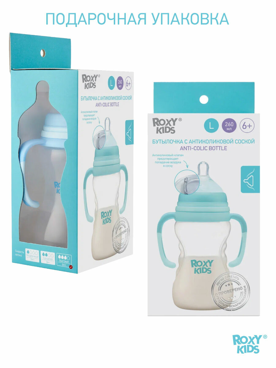 Бутылочки (поилки) Бутылочка Roxy-kids средний поток 260 мл 6+ мес