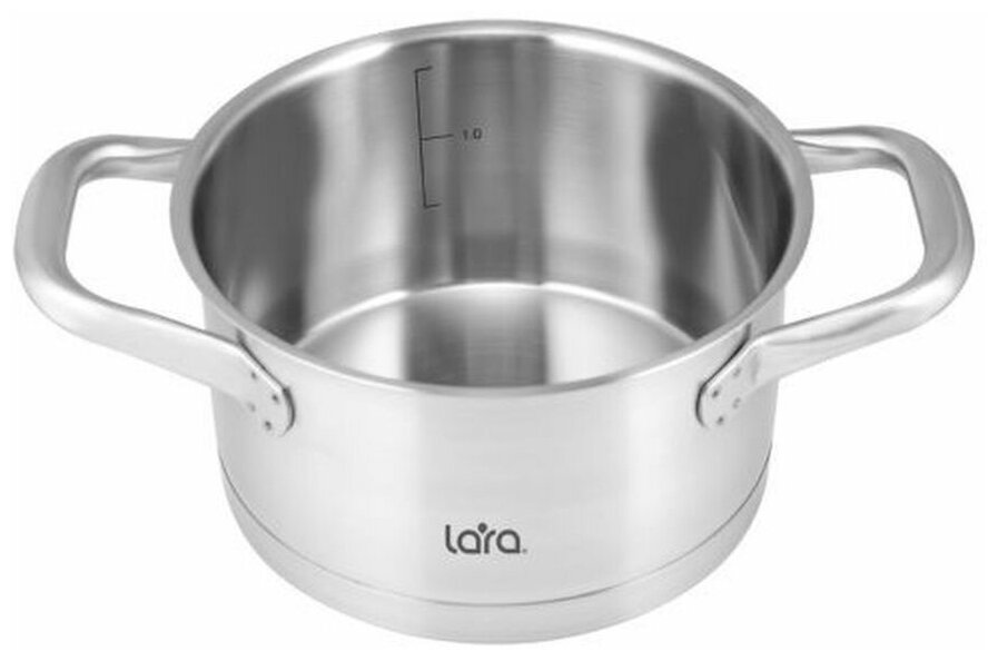 Кастрюля LR02-430 Кастрюля LARA (нерж) серия 1,8л 16x9см, прямое капс.дно, полые руч.,крышка,шкала