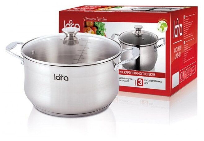 Кастрюля Кастрюля LARA LR02-40 серия Elite /26х14,5см, 7,7л, литые ручки, капсул.индукц.дно