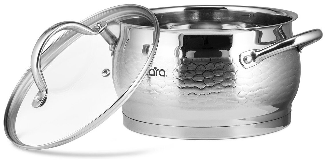 Лучшие цены. В кастрюле LARA LR02-332 серии «Milano» объединены классическая округлая форма корпуса с оригинальной фактурной отделкой. Благодаря этому решению посуда станет прекрасным дополнением интерьера кухни. Внутренняя мерная шкала для точного соблюдения рецептуры. Кастрюля выполнена из высокоуглеродистой нержавеющей стали марки AISI201 с комбинированной полировкой. Крышка с паровыпуском выполнена из жаропрочного стекла и имеет стальной обод G-формы, который плотно прилегает к стенкам кастрюли. Магазины в вашем городе.