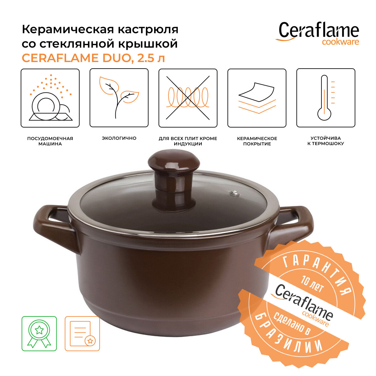 Кастрюля керамическая со стеклянной крышкой Ceraflame Duo 24 см, 4.3 л, шоколад 10 990 ₽ Подробнее