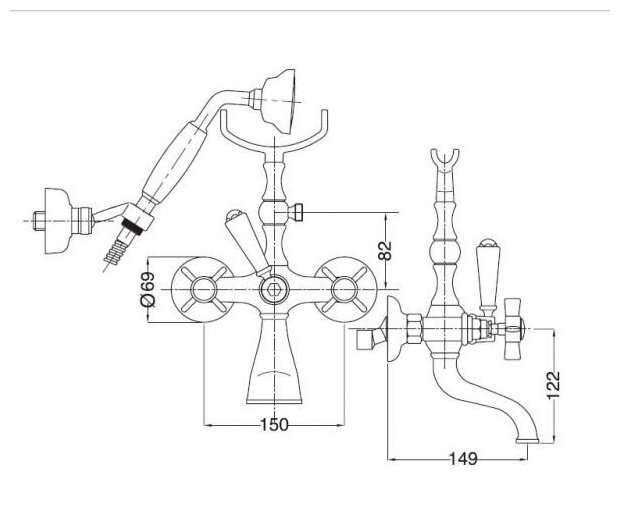 Лучшие цены. Размер: 15 х 15 х 31 см Цвет: Бронза Смеситель для ванны, внешний С ручным душем и настенным (отдельным) держателем. Магазины в вашем городе.