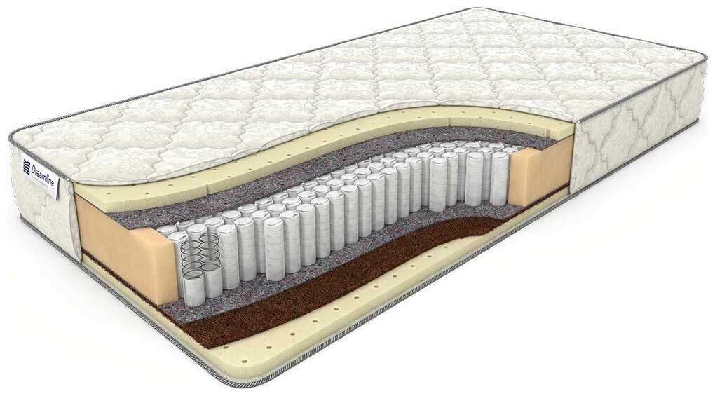 Лучшие цены. В основе разностороннего матраса SleepDream Soft S1000 лежит анатомический блок пружин карманного типа S1000. Пружины оказывают сопротивление только в местах приложенной нагрузки, не издают посторонних шумов и скрипов. Слои латексированной койры кокоса выстелены с обеих сторон от пружин. Кокос добавляет ровности и ортопедических свойств поверхности, сон на таком покрытии оказывает профилактическое воздействие на позвоночник. С одной стороны верхним слоем выложен натуральный латекс. Магазины в вашем городе.