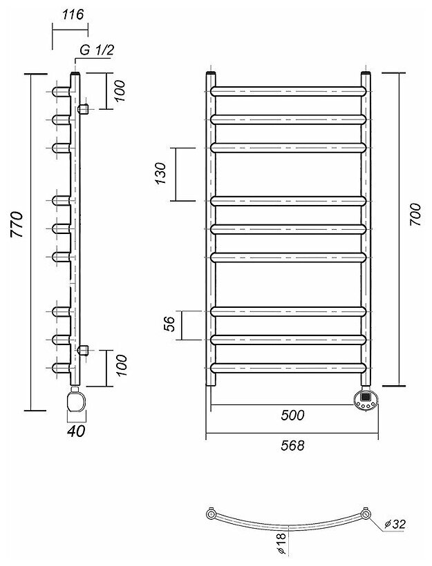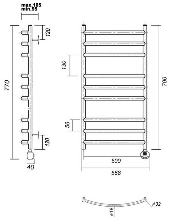 Лучшие цены. Характеристики: Высота: 70 см Межосевое расстояние: 50 см Ширина: 52.8 см Количество перекладин: 9 Коллекция: Калипсо Тип: электрический Форма: лесенка Направление подключения: нижнее; справа С боковым подключением: нет Глубина: 11.6 см Мощность: 300 Вт Поворотный: нет Полка в комплекте: нет Материал: нержавеющая сталь Подключение: электропровод с вилкой Монтаж: подвесной Цвет: хром Гарантия на полотенцесушитель: 24 мес Страна происхождения бренда: Россия Теплоноситель: антифриз Площадь обогреваемого. Магазины в вашем городе.