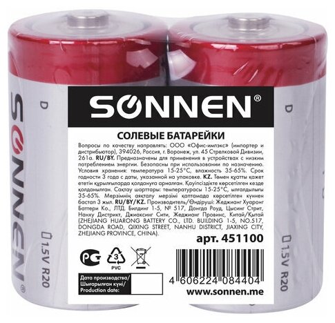 Лучшие цены. Солевые батарейки SONNEN типоразмера D идеально подходят для приборов с низким потреблением энергии. Рекомендуется использовать в электронных часах. Магазины в вашем городе.