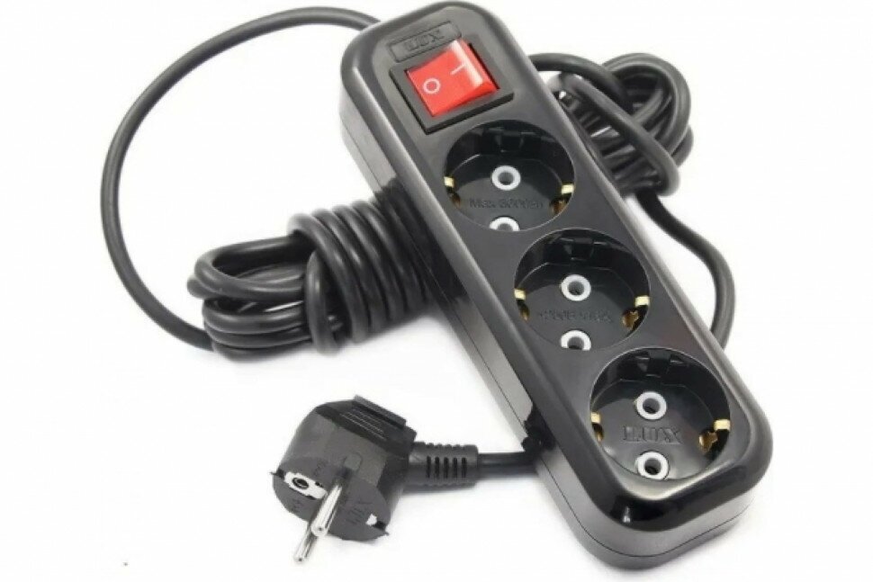Сетевой фильтр LUX У3-ЕВК-05, 3 розетки, с заземлением, 250 В, 16 А, 5 м, черный (4606400418221)