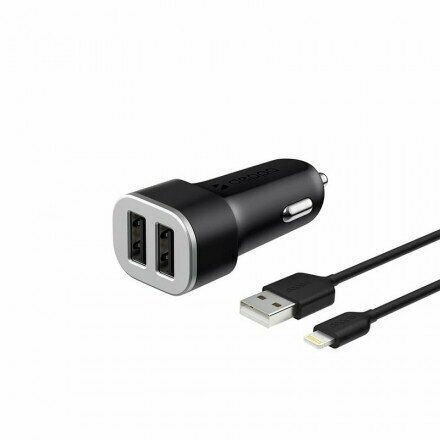 Deppa АЗУ + кабель Lightning Deppa Smart Car Charger 2.4A/2USB Black чёрное 11285