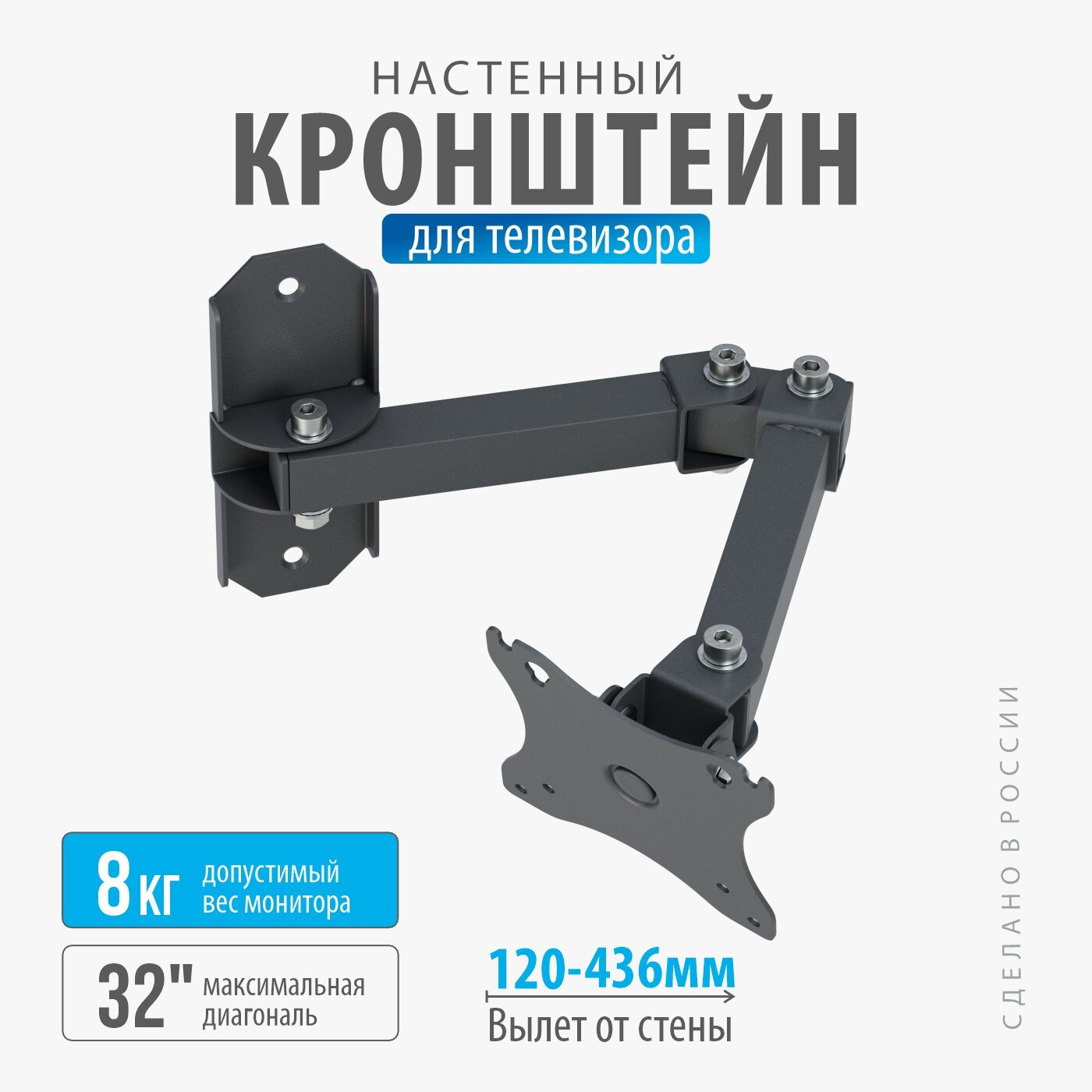 Подставки и крепления Надежный настенный кронштейн РЭМО K-513, наклонно-поворотный, для телевизора, монитора с диагональю 15"-32", крепеж VESA 75*75 и 100*100 мм.