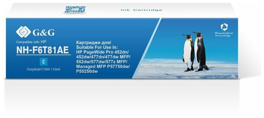 Картридж струйный G&G GG-F6T81AE голубой (110мл) для HP PageWide Pro 452dn/452dw/477dn/477dw MFP