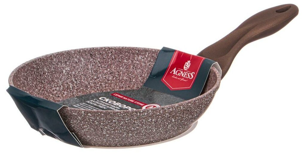 Лучшие цены. Сковорода natural stone с гранитным антипригарным покрытием 20х4.5 см Agness (947-570) Представляем вашему вниманию серию «Natural Stone» бренда «Agness». Эта посуды выполнена из кованный алюминия. Благодаря этой технологии корпус становится более прочным, износостойким и не подвержен деформации. Благодаря многослойному антипригарному покрытию блюда не пригорают, а посуду после использования легко мыть. Магазины в вашем городе.