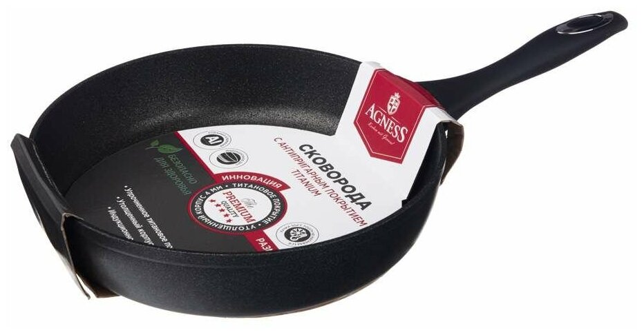 Лучшие цены. Сковорода plazma titanium 26x6 cм, корпус 4 мм, инд дно, антипригарное покрытие, pfoa free Agness (936-524) Посуда ТМ AGNESS с антипригарныйм покрытием решает несколько важных вопросов с помощью новых технологий: Долговечность и прочность: внутренняя поверхность сковороды подвергается пескоструйной обработке для получения шероховатой поверхности, на которую с помощью технологии плазменного осаждения наносится антипригарное покрытие Titanium, содержащее в себе кристаллы металла. Магазины в вашем городе.
