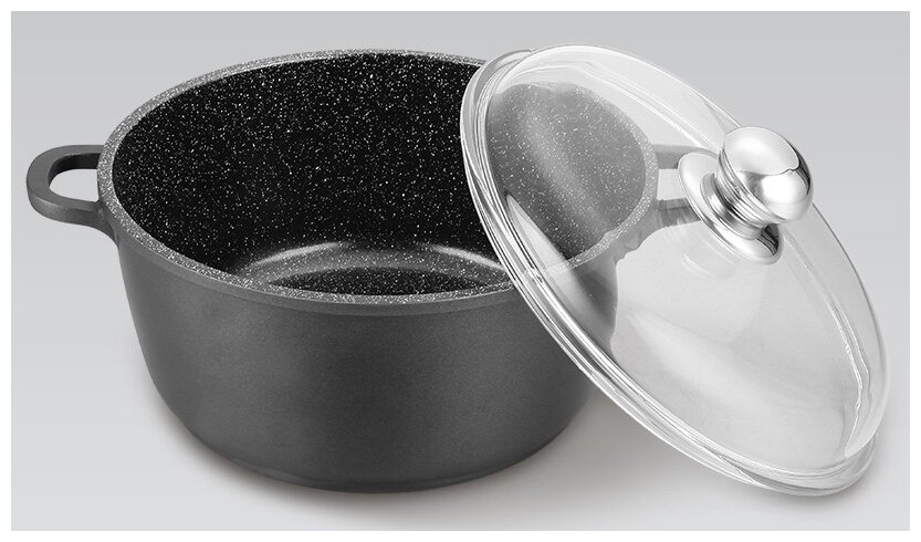 Лучшие цены. Кастрюля Maestro Cast со стеклянной крышкой MR-4620C объемом 2,1л. изготовлена из прочного литого алюминия. Металл экологически чистый, надёжный, не поддаётся деформации при воздействии высоких температур, не выделяет опасных для Вашего здоровья примесей и не влияет на цвет и вкусовые качества продуктов. Имеет внутреннее антипригарное покрытие. Крышка выполнена из термостойкого стекла и имеет универсальную куполообразную форму, которая способствует направлению конденсата обратно в кастрюлю, тем самым. Магазины в вашем городе.