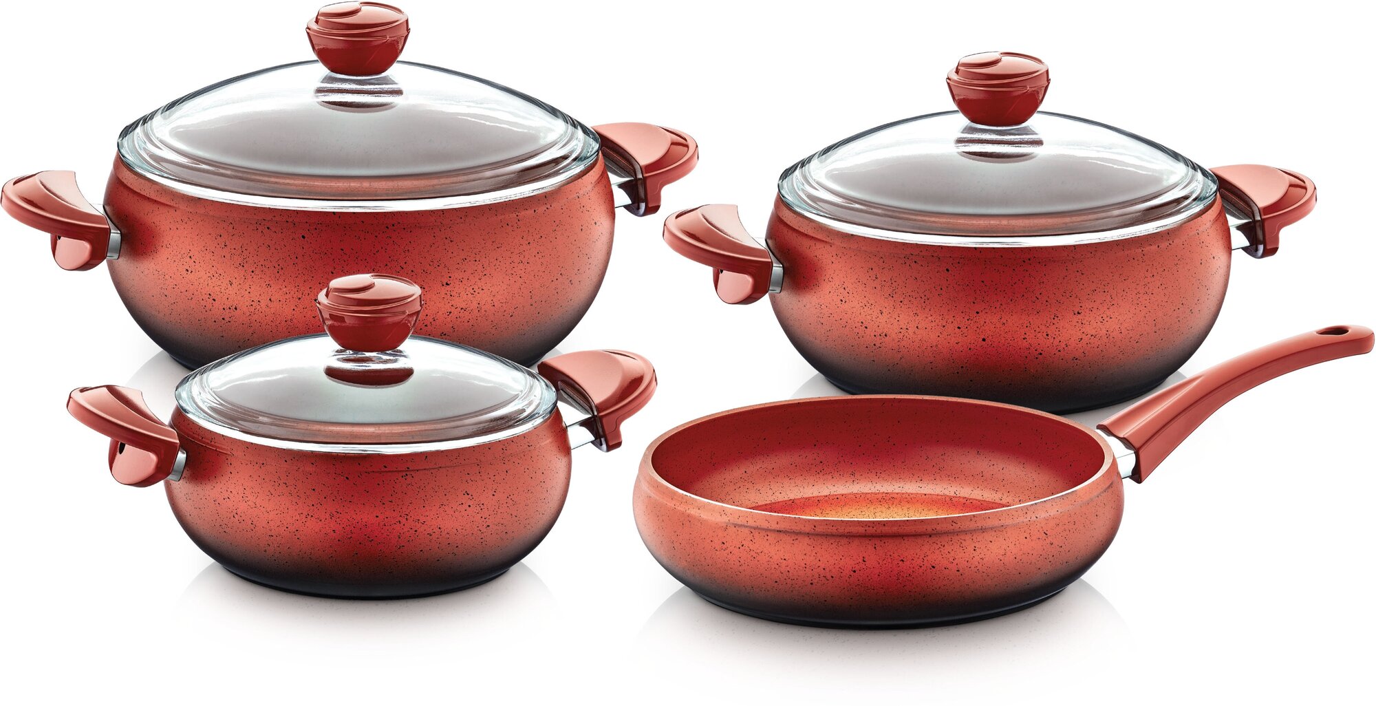 Лучшие цены. Кастрюля 2,0 л с антипригарным гранитным покрытием и стеклянной крышкой цвет терракот. Внутреннее многослойное антипригарное покрытие усилено гранитными частицами для повышения прочности и срока службы изделия. Покрытие не содержит PFOA, APFO, C8, экологически безопасно. Бакелитовые ручки. Уплотненное дно 4 мм предотвращает деформацию, обеспечивает быстрый, равномерный нагрев. Высококачественное антипригарное покрытие позволяет готовить без масла или с минимальным его добавлением. Магазины в вашем городе.