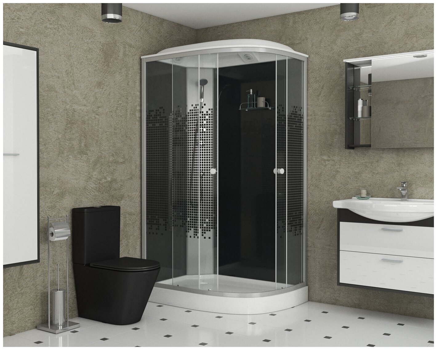 Душевая кабина Niagara Eco NG-4501-14BLACK 90х90х215 низкий поддон, стекло мозаика