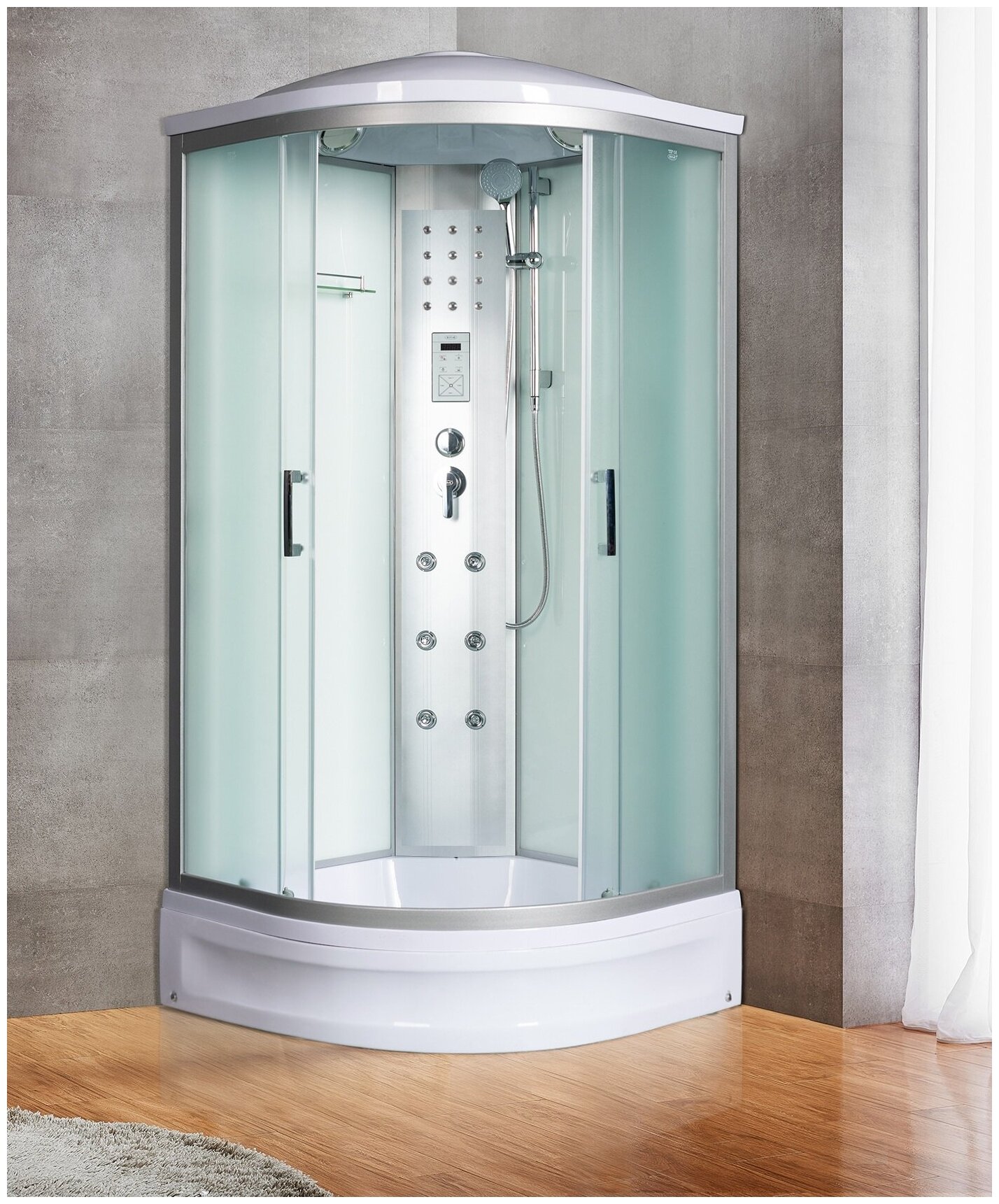 Лучшие цены. Комплектация: ~ крыша ~ верхний душ ~ вентиляционные отверстия (2шт) ~ штанга ~ ручной душ 3х режимный ~ смеситель с переключателем режимов ~ 3 г/м форсунки ~ зеркало ~ полочка ~ сифон с гидрозатвором Преимущества: Легкая сборка. Ручной душ на штанге для регулировки высоты. Шланг для душа 1,5 м с системой ANTITWIST (вращение шланга на 360º) Ручной душ 3х позиционный. Обновленные и улучшенные ручки. Смесители из латуни с металлической ручкой. Закаленные стекла с шелкографией на верхней и нижней части стекол. Магазины в вашем городе.