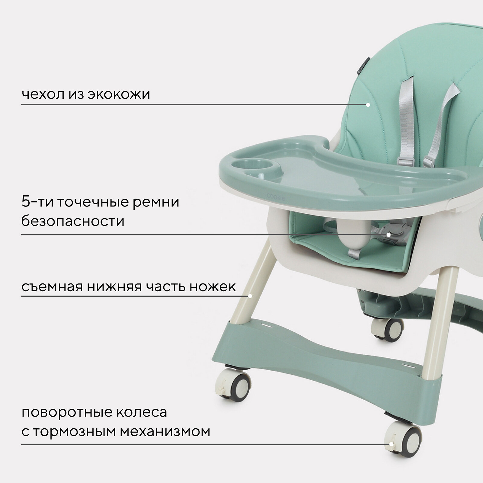 Стульчики для кормления Стульчик для кормления Rant basic Cookie от 6 месяцев, Green (арт. RH700)