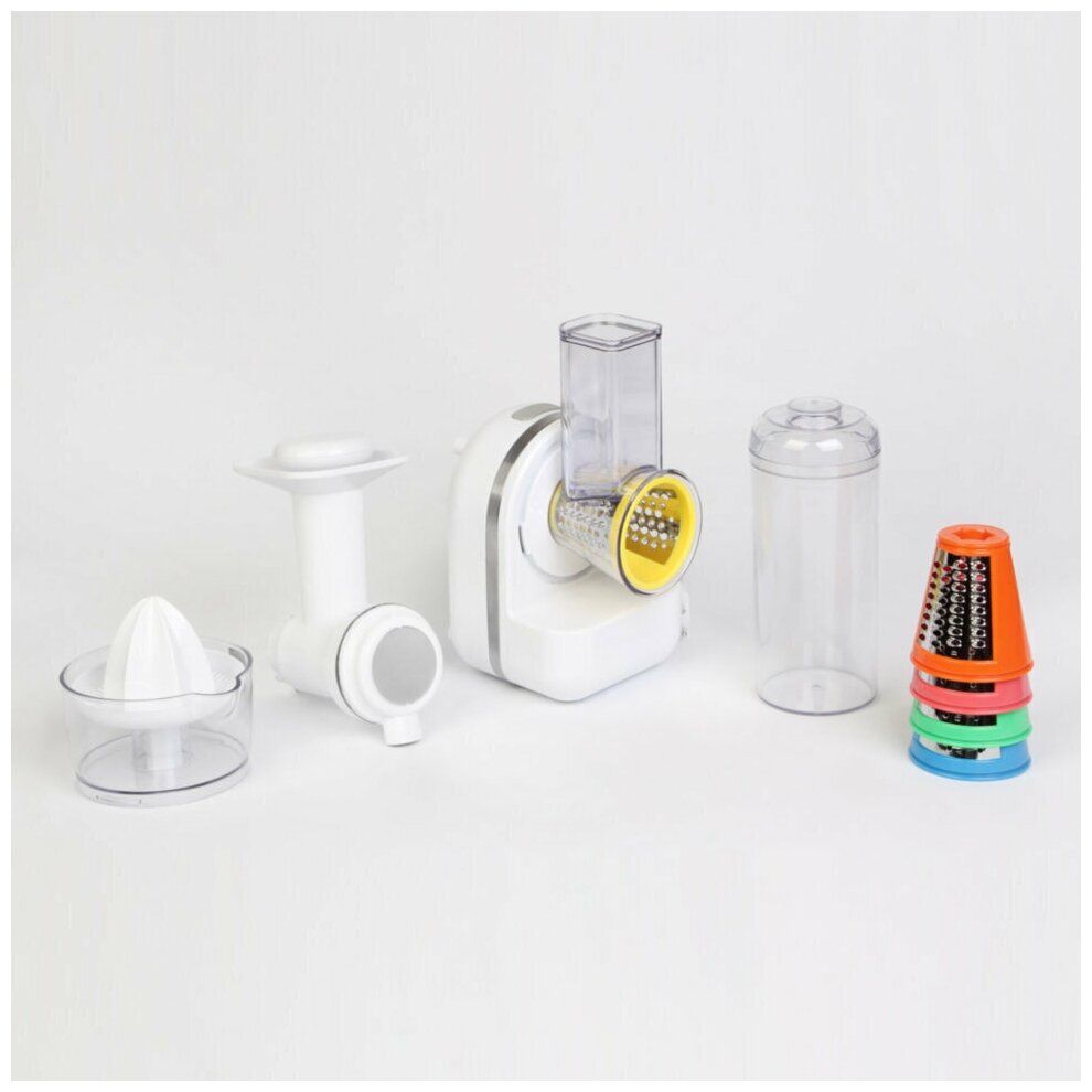 Лучшие цены. Кухонный комбайн мультикухня 4 в 1 – универсальный прибор, который заменит Вам несколько кухонных предметов и компактно расположится на Вашей кухне! Преимущества: 4 терки в 1 наборе Экономит время и силы Заменит целый набор кухонных предметов и приборов: терка/измельчитель, шинковка, соковыжималка, десертница Компактный и мощный Измельчает все без остатка на 100% Лезвия насадок из нержавеющей стали Комплектация Мульти кухни 4в1: - База с мотором - Насадка для нарезания продуктов толстыми ломтиками – синяя. Магазины в вашем городе.