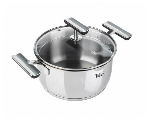 Лучшие цены. Кастрюля из нержавеющей стали TalleR TR-17247 «Долорес» с крышкой объем 3 л Размеры: 20 х 10,5 см (диаметр х высота без крышки). Высококачественная нержавеющая сталь 18/10. Капсулированное дно. Толщина стенок 0,5 мм, толщина дна 4 мм. Специальное отверстие для выхода пара позволяет готовить с закрытой крышкой, предотвращая выкипание. Эргономичные ручки из нержавеющей стали c силиконовой вставкой (силиконовые накладки имеют коричневый цвет). Надежное крепление ручек гарантирует безопасное использование. Магазины в вашем городе.