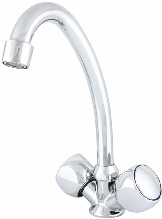 Лучшие цены. Характеристики Материал корпуса: цинк Тип смесителя: двухрычажный Длина излива, мм: 140 Переключатель на фильтр: нет Покрытие: хром Поворотный излив: да Лейка: нет Встраиваемый: нет Запорный клапан: керамическая кран-букса Выдвижной излив: нет Термостат: нет Аэратор: да Форма излива воды: традиционная Назначение: для кухни Цвет: хром Излив: есть Стиль: классический Тип установки: настольный/на раковину Высота смесителя, мм: 225 Подводка в комплекте: нет Форма смесителя: округлая Гибкий излив: нет Складной. Магазины в вашем городе.
