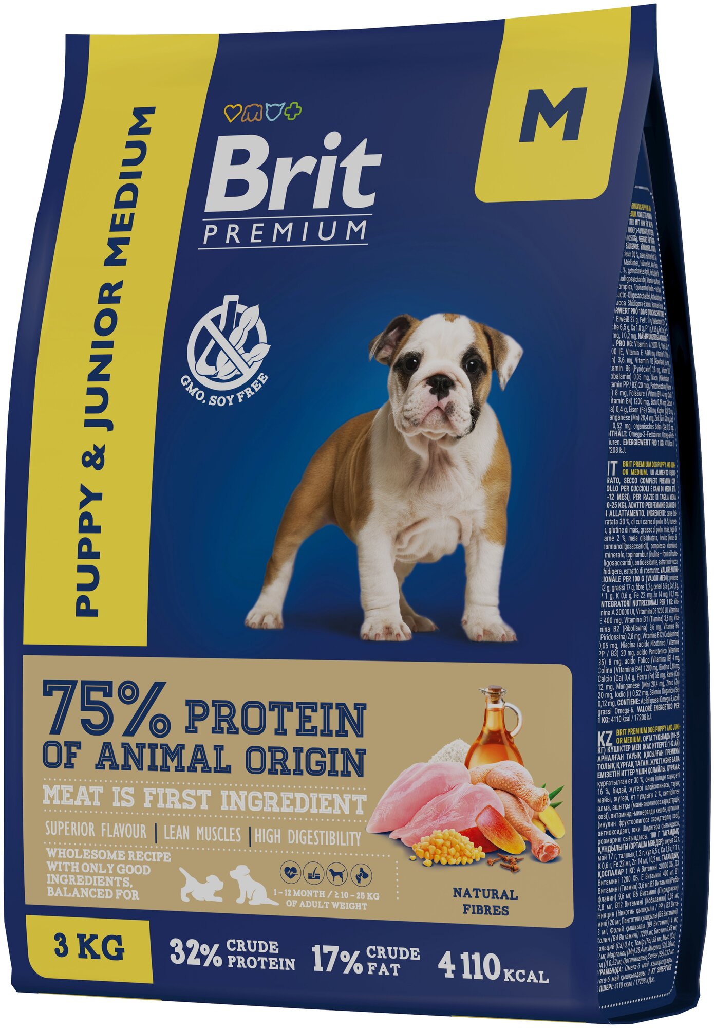 Сухой корм Brit Premium Puppy and Junior Medium для щенков и молодых собак с курицей, 3 кг