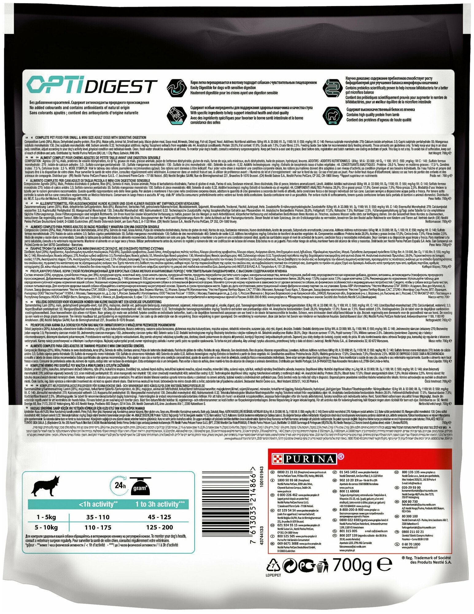 Сухой корм Pro Plan для взрослых собак мелких и карликовых пород с чувствительным пищеварением с комплексом OPTIDIGEST® с ягненком и рисом, Пакет, 700 г,Для взрослых собак