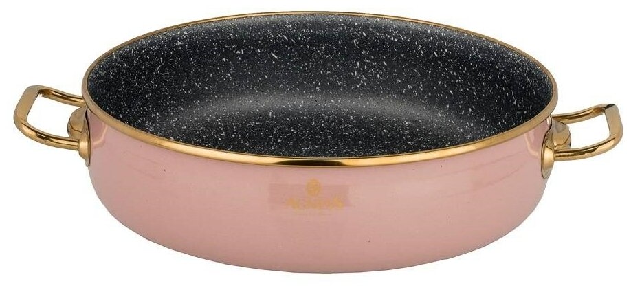 Сковородка Сотейник эмалированный Agness 26см / 3,5л, антипригарный, индукция, пудрово-розовый (950-274)