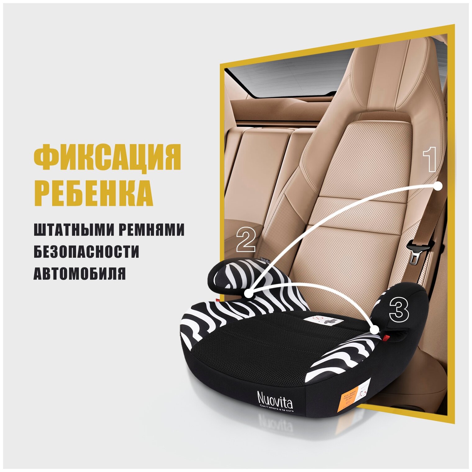 Детские автокресла Автокресло/Бустер Nuovita Maczione NB-1, Группа 3, 22-36 кг (от 6 до 12 лет) (Zebra/Зебра)