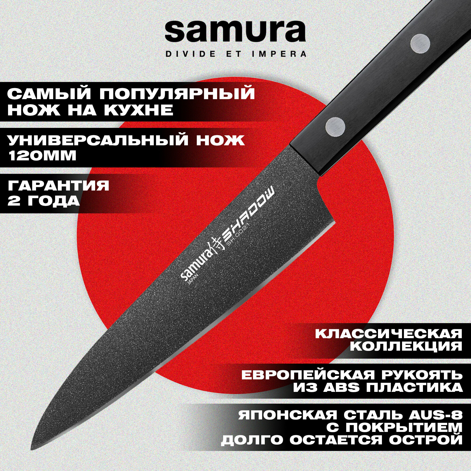 Нож кухонный универсальный Samura SHADOW, 120мм (SH-0021/K)