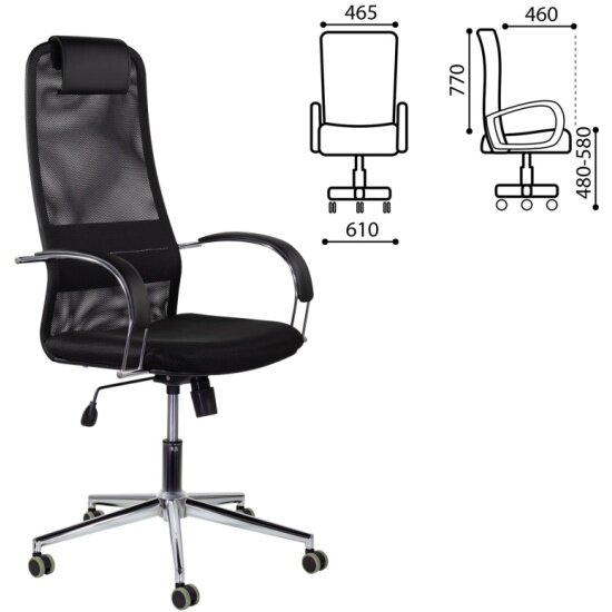 Кресло офисное BRABIX "Pilot EX-610 CH" premium, хром, ткань-сетка, черное, 532417