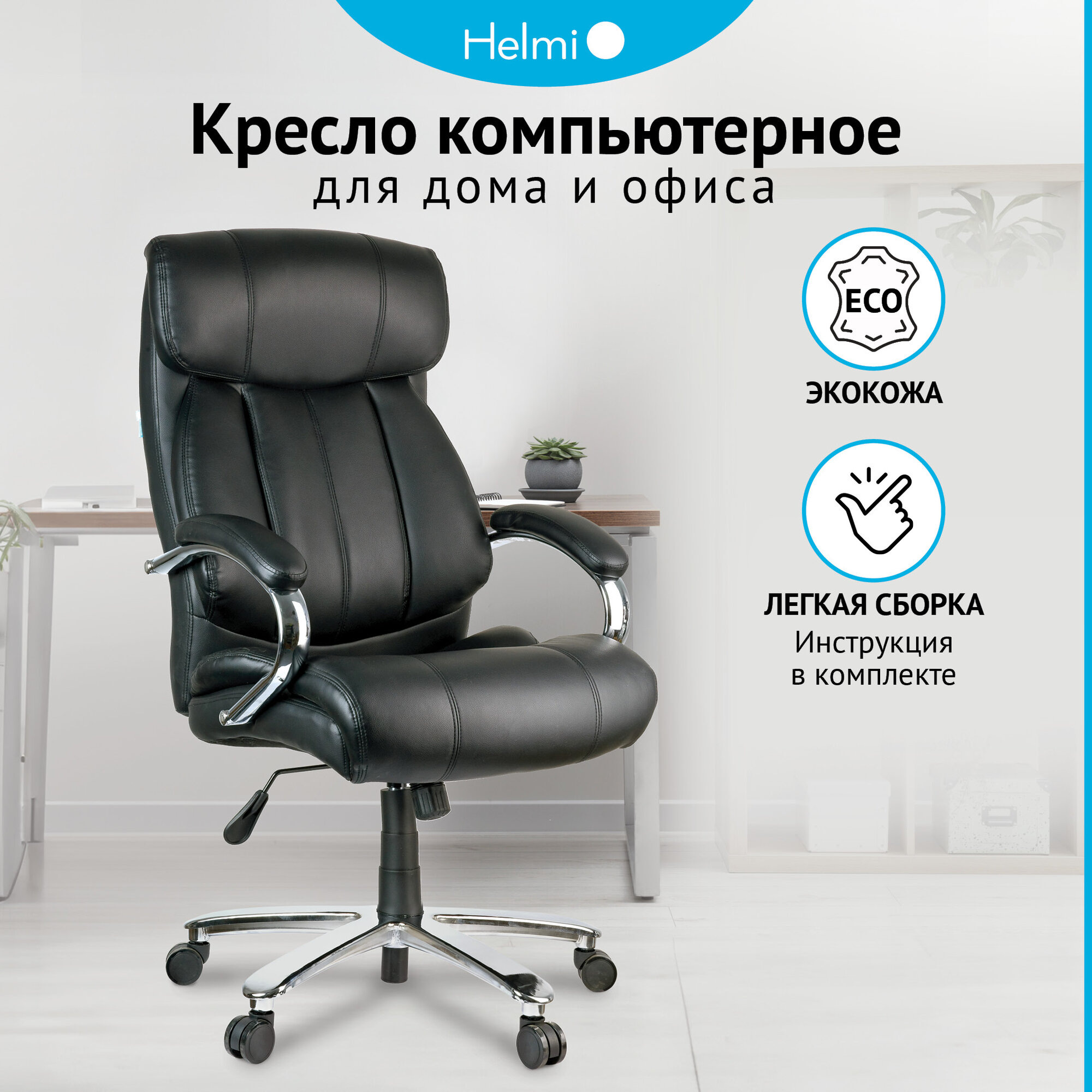 Компьютерное кресло Кресло руководителя Helmi HL-ES06 "Granite" повыш. прочности, экокожа черная, хром, до 200кг