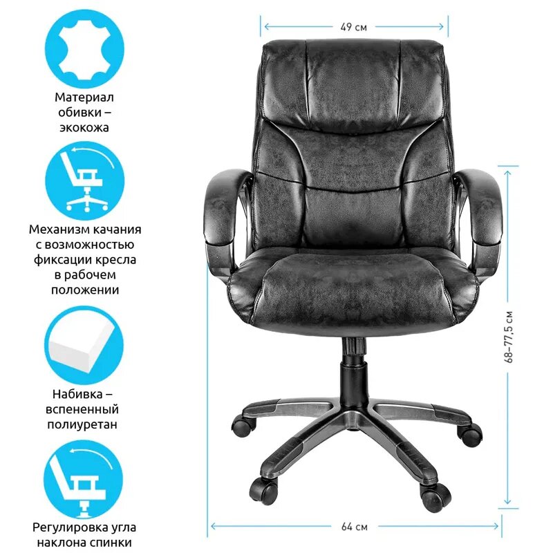 Кресло руководителя Helmi HL-E08 "Receipt", экокожа черная 274833