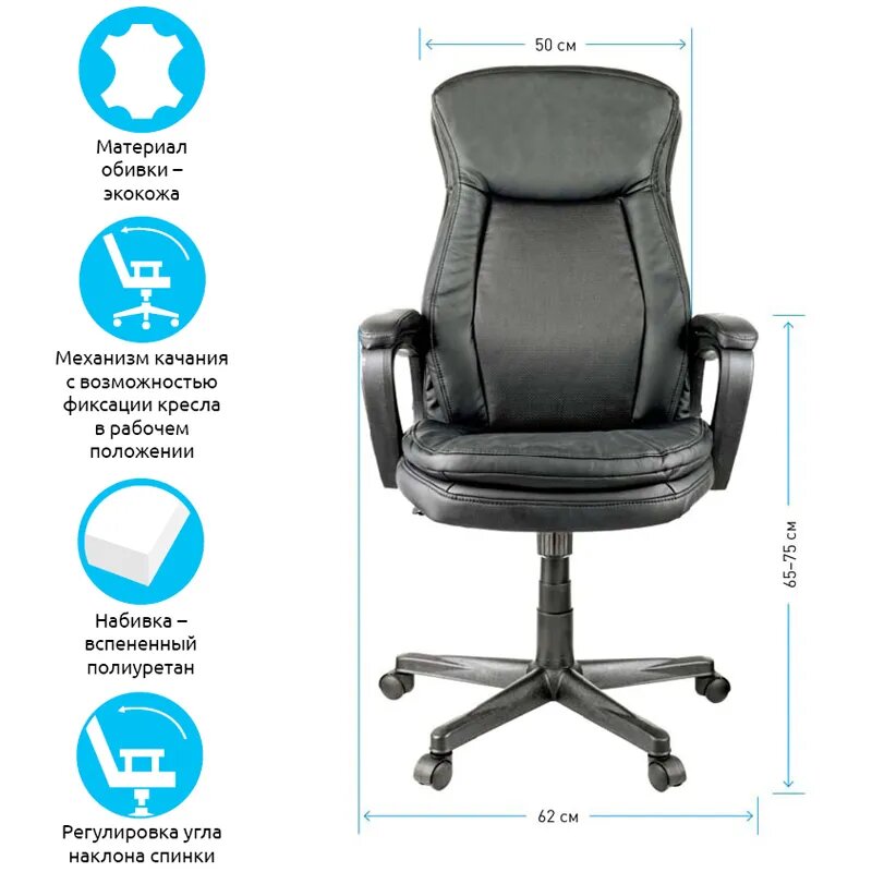 Компьютерное кресло Кресло руководителя Helmi "Advantage", экокожа черная (283026)